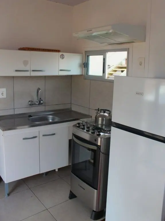 Espacio bien distribuido con cocina completa, heladera, aire acondicionado y Tv.